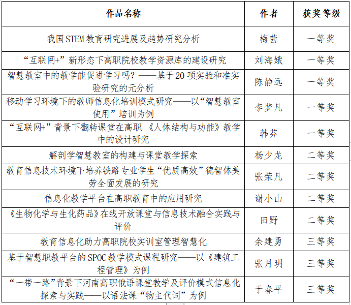 近日,河南省教育厅下发《关于公布第六届教育信息技术应用优秀成果评选结果的通知》(教电教〔2019〕646号),我校12项成果在此次评选活动中获奖,具体名单如下: