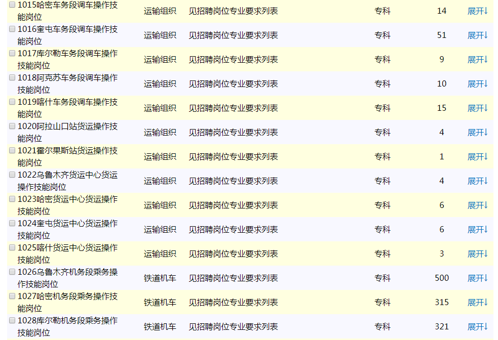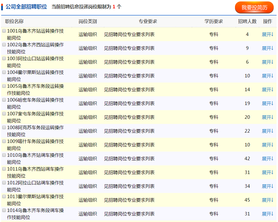 中国铁路乌鲁木齐局集团有限公司根据运输生产工作需要,现招聘全日制普通高校2020届大专(高职)毕业生。具体事项公告如下: