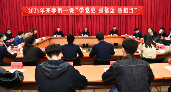 为进一步乘势而上,顺势而为,做好师生思想政治工作,落实落细省委、省委高校工委关于组织全省高校上好2021年春季开学思想政治教育第一课的要求,校党委召开专题党委会,制定《中共菠菜资源平台大全委员会关于组织上好2021年春季开学第一课的通知》,细化开学第一课实施方案,将开学第一课纳入思想政治理论课教学,融入课程思政建设,一级抓一级,层层抓落实,扎实推动活动深入开展,切实营造良好育人氛围,确保春季第一课取得实效。