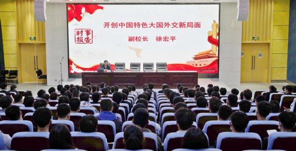 此前,党委书记许琰以上率下,以《学党史重担当在奋斗成长中践行初心使命》为题给广大师生作开学第一课研学会专题辅导报告。随后,其他校领导班子成员纷纷深入联系学院,围绕党史学习教育、脱贫攻坚宣传、“卫国戍边”英雄事迹、抗疫教育活动等内容,以《追忆四渡赤水,砥砺奋斗前行》《开创中国特色大国外交新局面》《收官十三五 实现新跨越》等为题讲授开学第一课。