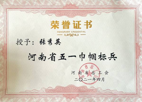 日前,河南省总工会下发文件《河南省总工会关于表彰河南省五一巾帼奖状(奖章)、五一巾帼标兵岗(标兵)的决定》(豫工发[2021]4号)对2020年女职工先进集体和先进个人进行表彰,我校公共教学部数学教研室主任张秀英教授被授予“河南省五一巾帼标兵”。