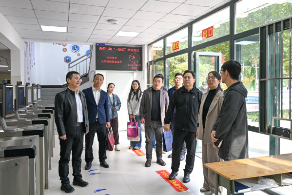 李立功一行来到我校轨道交通综合实训基地,查看了复兴号动车组实训服务设施,观摩了高铁驾驶等实景训练作业情况。深入天使书院“一站式”学生社区,现场了解了书院管理、文化建设、活动开展等情况。
