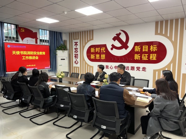 11月12日,天使书院在二楼会议室召开消防安全教育工作推进会。在会上,针对近期“山东一高校宿舍起火消防通道未开启”的事件进行重点学习和研判。王芳书记对书院领导班子和全体育人导师做出了要求;要加强消防安全培训,提升应急实战能力;全体教职工要熟悉书院消防安全疏散通道的位置,并能够正确使用消防灭火器和消防栓进行灭火。