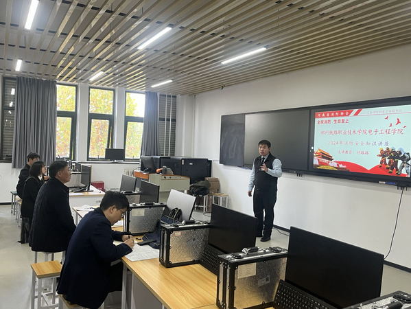 为进一步加强学校消防安全工作,增强师教职工的消防安全意识和自救自护能力,筑牢校园安全防线,11月19日下午,电子工程学院在学院6B309教室、铁龙广场开展消防知识讲座及实战演练活动,活动邀请了省消防协会义务消防科普宣传服务队的付路路教员进行讲解与演示,学院全体教职工参加。