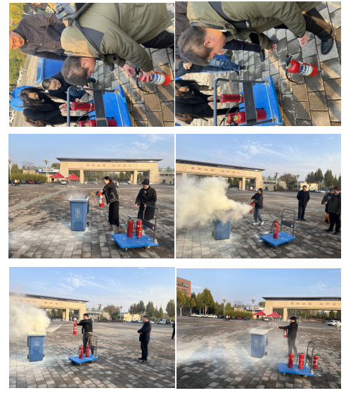 讲座结束后,在学校铁龙广场空旷地带开展了初期火灾扑救实战演练。付路路教官就灭火器使用前的检查、灭火器的分类、使用方法及注意事项进行现场讲解、示范、指导。学院教师们逐一上前亲自体验灭火器的实际操作,有效提升了教职工的消防安全技能和自救能力。