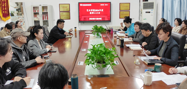 会议在庄严的国歌声中拉开了序幕。艺术学院党总支书记程萍致开幕词,强调教职工大会是学院教职工政治生活中的一件大事,是广大教职工参与民主管理、共谋学院发展的一次重要会议,肯定了学院一年来做出的成绩,希望与会老师以高度的主人翁精神投身于学院的改革与发展,解放思想,充分发扬民主,积极献言献策。院长邹联丰作《行政工作报告》,总结了一年来学院在教学工作、思政课改革创新、科研、人才培养、师资队伍建设、合作办学与社会服务等方面取得的成绩,分析了当前学院发展的困难,对未来学院重点工作做了整体部署。党总支副书记孙姣姣同志作《分工会工作报告》,副院长武郑芳作《经费使用情况报告》,分工会委员武晓会同志作《提案征集工作报告》。
