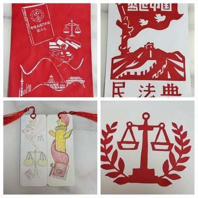 本次活动共分方案征集、作品提交、师生评选、成果展示等四个板块。经方案征集、作品提交,书院共计收到学生原创作品30余份,涵盖剪纸、手绘、手抄报、主题征文等多种形式,学生们围绕《中华人民共和国民法典》有关内容创作的作品匠心独具、形式丰富,不仅形式上引人入胜,还具有一定的教育意义。经师生层层筛选,共20件作品脱颖而出,以线上+线下相结合的方式进行展示,引起热议。同学们纷纷表示,通过此次活动,对《中华人民共和国民法典》相关知识有了更为深入的了解,也懂得了在日常生活中该如何运用法律武器保护自己、规范自身行为。