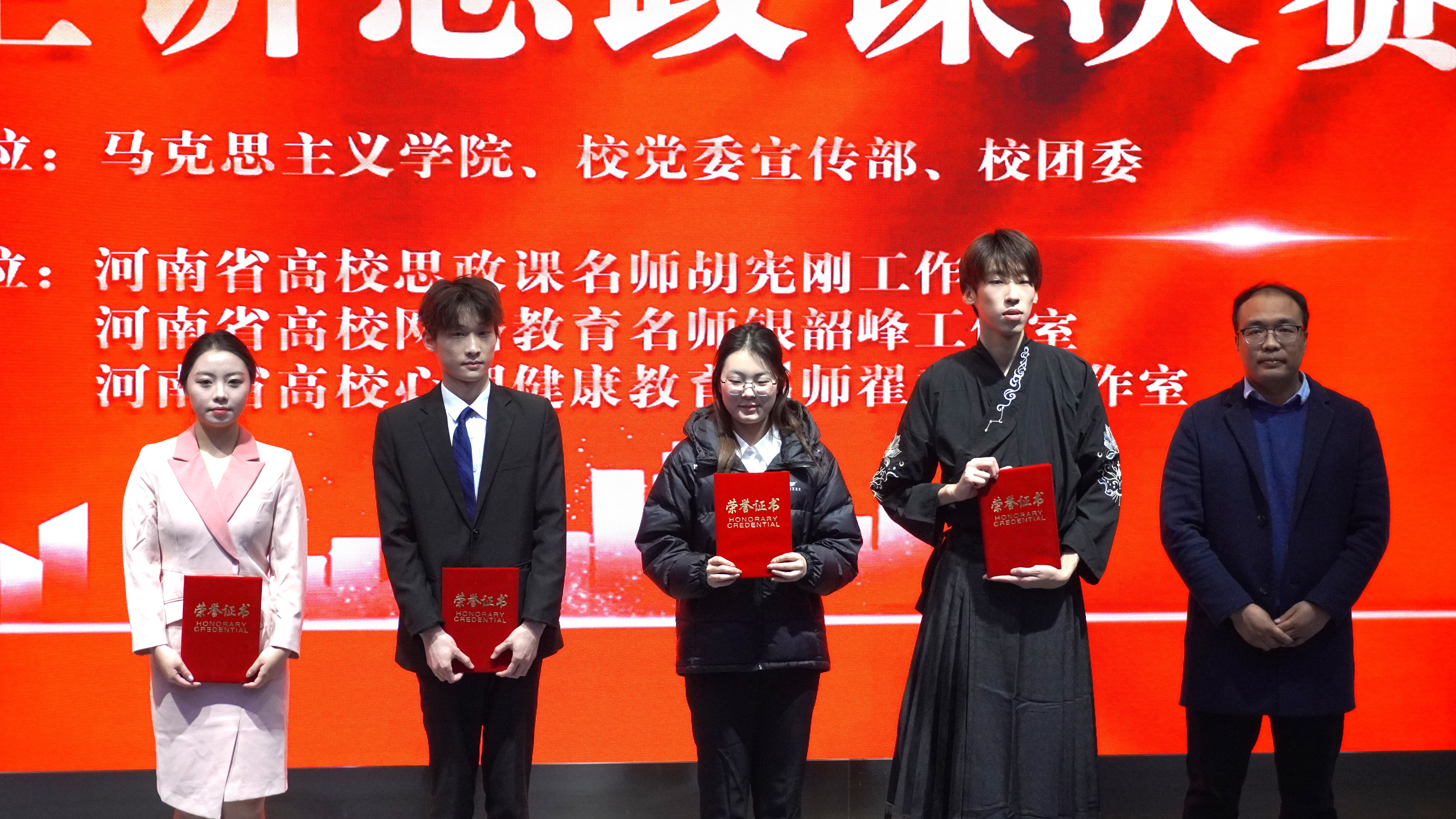 为深入贯彻落实习近平总书记关于“大思政课”的重要指示批示,充分发挥高校思政课立德树人关键课程作用,12月3日,马克思主义学院、河南省高校思政课名师胡宪刚工作室联合河南省高校网络教育名师银韶峰工作室、河南省高校心理健康教育名师翟秀军工作室在第二报告厅举办了大学生讲思政课的决赛活动,300余名师生现场观看了展示活动。