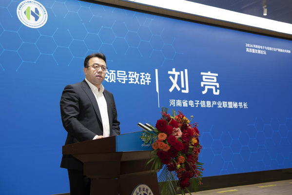 刘亮代表河南省电子信息产业联盟致辞,他表示,联盟将进一步落实河南省关于培育壮大28条千亿级重点产业链及7大先进制造业集群的重大举措,充分发挥资源统筹整合能力,与共同体单位一道助力中原电子信息产业逐鹿全球,在数字浪潮中稳立潮头、领航前行。