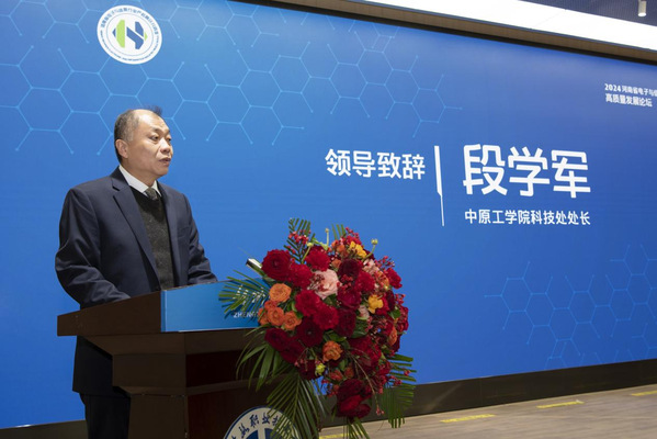 段学军代表中原工学院致辞,他认为,中原工学院将持续与河南省电子与信息产教融合共同体内的所有兄弟单位加大合作力度,共同探索产教融合的人才发展引育路径打造共谋、共建、共管、共评、共享的全国示范性共同体。