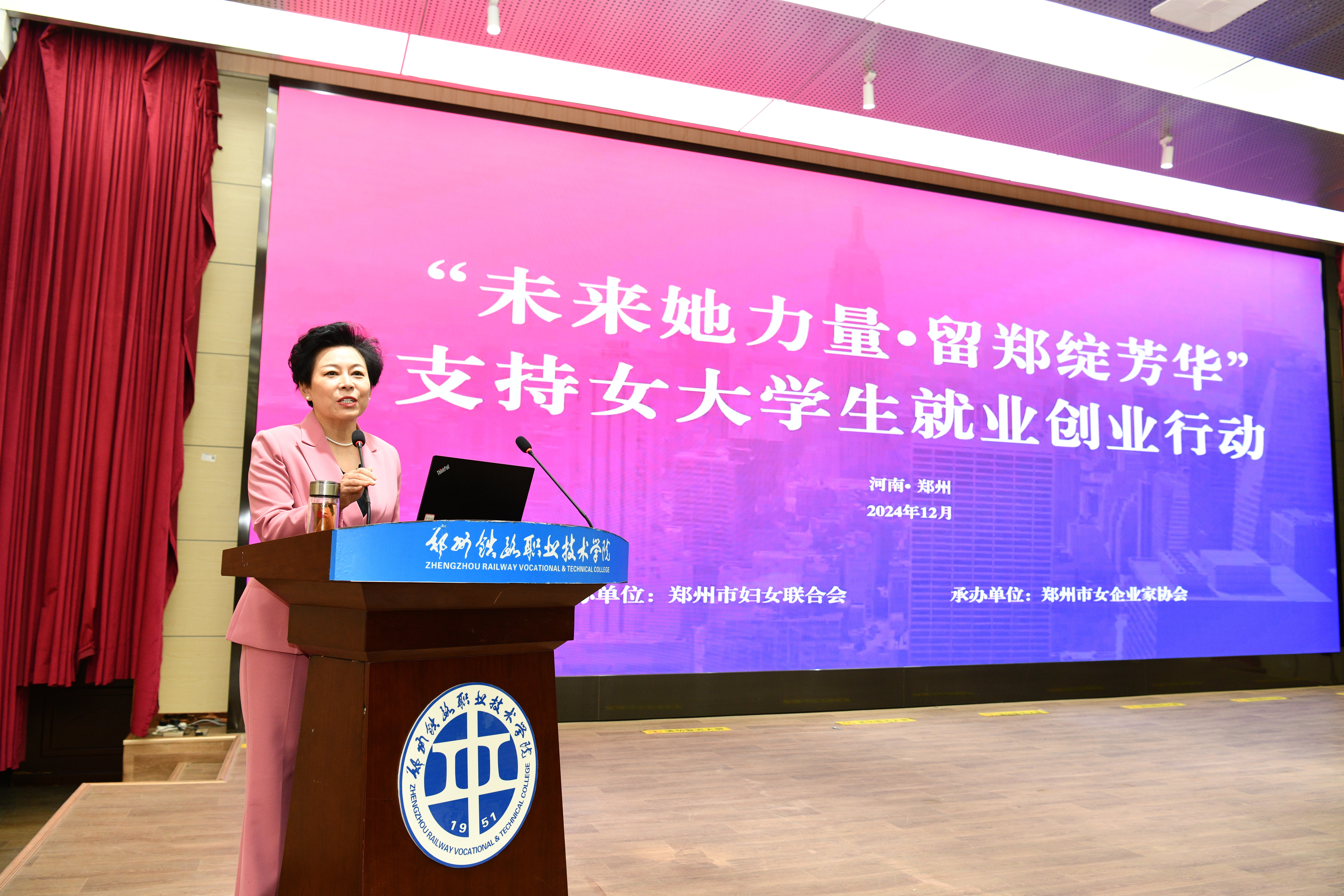 12月25日,由郑州市妇女联合会主办,菠菜资源平台大全、郑州市女企业家协会承办的“未来她力量·留郑绽芳华”支持女大学生就业创业行动走进我校,郑州市妇联党组成员、副主席任璐,我校副校长倪居出席活动。商学院联合招生就业处、校团委、创新创业学院共同举办。企业代表及我校100余名学生代表参加了此次活动。会议由郑州市女企业家协会副会长、河南艾尚国际教育集团董事长任韵静主持。