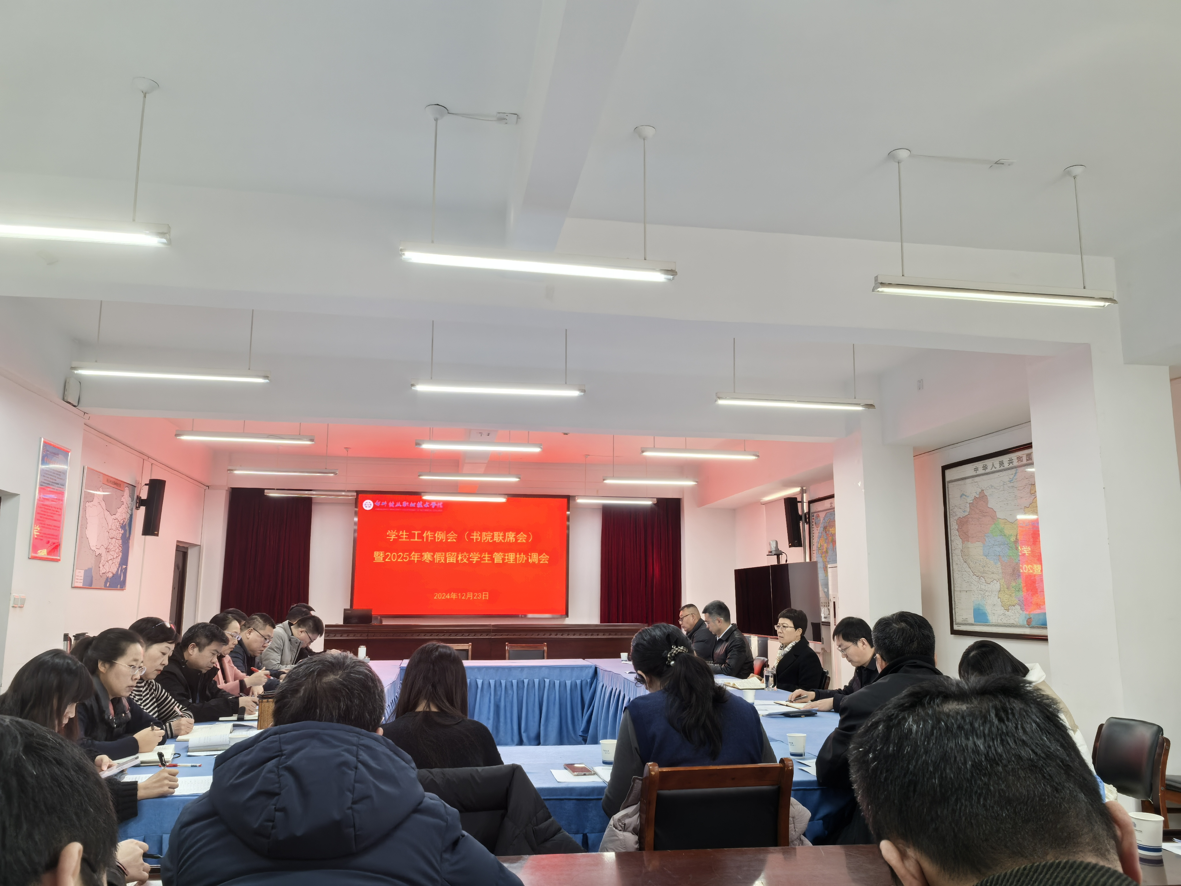 为切实做好学生教育管理工作,有效防范化解各类安全风险,12月23日上午,我校召开期末学生工作会暨2025年寒假学生留校工作协调会。党委委员、副校长董媛出席会议并讲话。