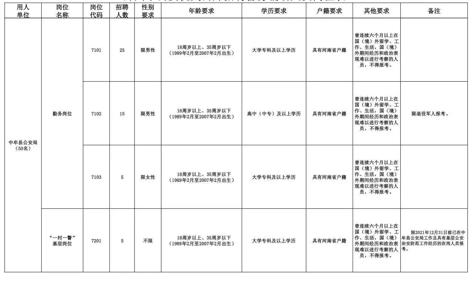 3.年满18周岁以上、35周岁以下(1989年2月至2007年2月期间出生)。对年龄有特殊要求的,以《岗位表》为准