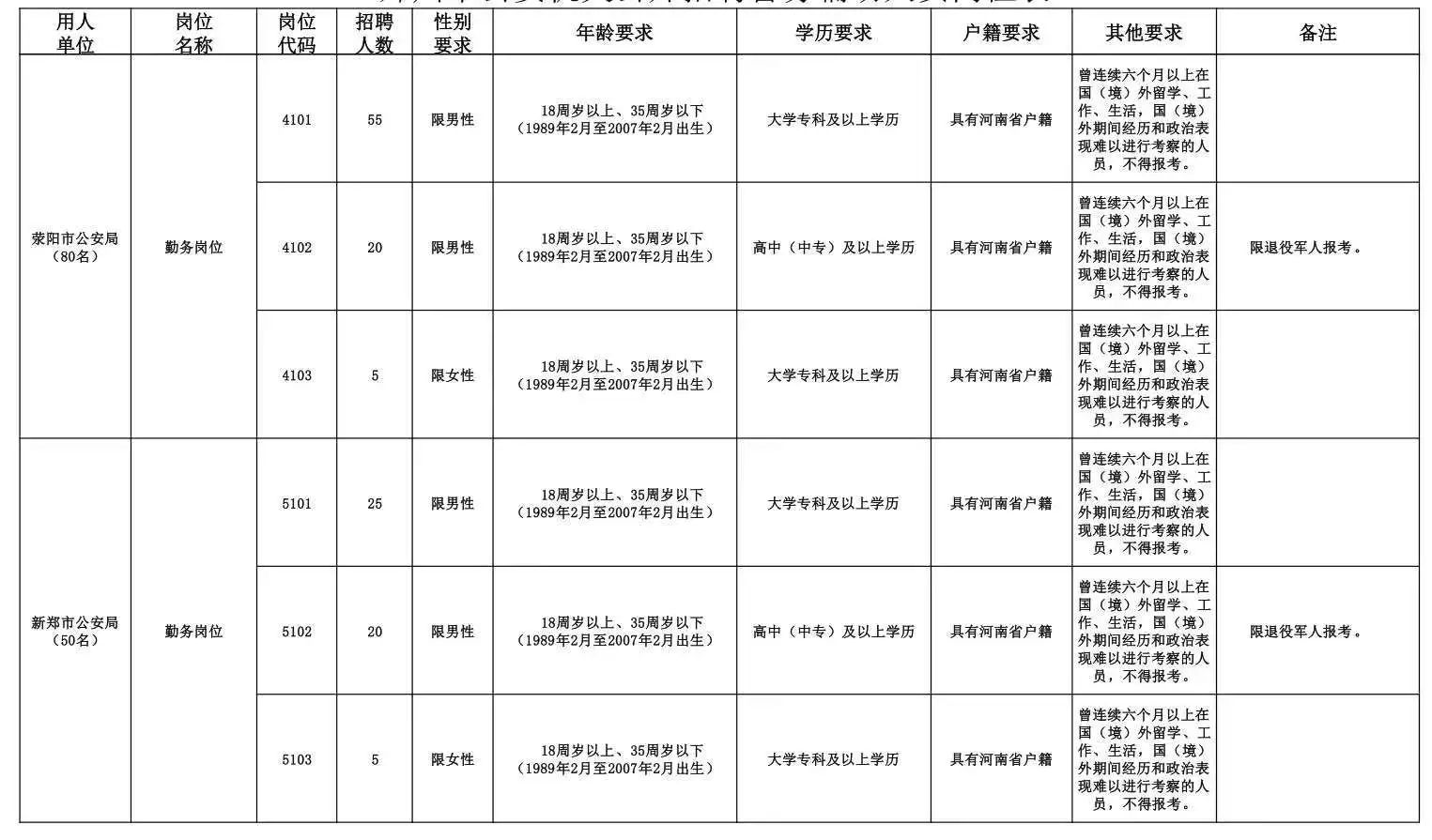 郑州市公安机关计划招聘警务辅助人员1200名,身份性质为非人民警察且非公务员、事业单位人员,不行使人民警察职权。具体招聘岗位要求,详见附件1《郑州市公安机关公开招聘警务辅助人员岗位表》(以下简称《岗位表》)。