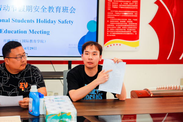 为加强“五一”国际劳动节期间留学生安全管理,保障留学生群体安全稳定,4月29日,丝路书院开展“五一”国际劳动节留学生安全教育,围绕劳动节假期安全教育、假期管理工作及留学生运动会总结表彰召开集体会议。