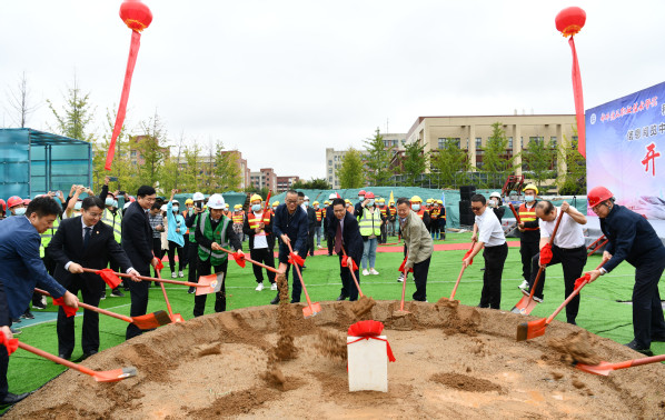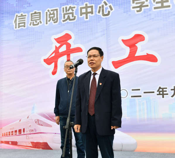 学校党委书记许琰宣布科威特政府贷款项目-信息阅览中心及学生宿舍组团三北楼工程正式开工,参加仪式的领导共同为项目进行培土奠基。