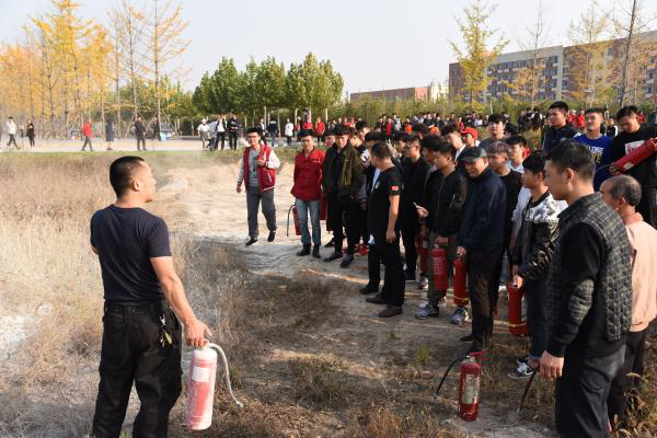 在“119消防日”来临之际,11月7日下午,我校在新校区铁龙广场举办2017年度师生消防技能培训及灭火演习。学校图书馆、后勤服务集团公司等重点防火单位负责人、保卫处工作人员及部分员工和各(院)系的学生代表300多人参加了此次演习。