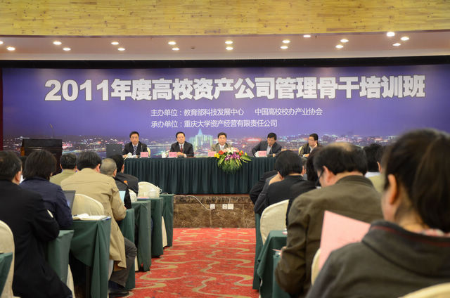 为了贯彻《国家中长期教育改革和发展规划纲要(2010—2020年)》提出的“推进产学研用结合,加快科技成果转化,规范校办产业发展”的重要任务,谋划“十二五”高校校办产业发展思路,确保2011年度高校产业各项重点工作的顺利开展,教育部科技发展中心、中国高校校办产业协会于2011年4月13-15日在重庆东方花苑饭店举办了“2011年度高校资产公司管理骨干培训班”。来自全国160多所高校的300余名骨干代表参加了培训。