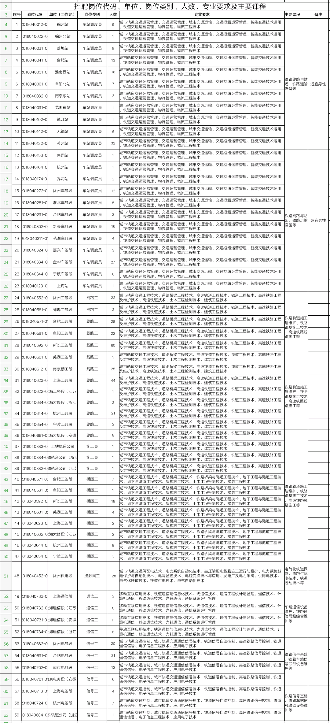 4. 符合招聘岗位要求的学历、专业等条件,所学专业为铁路专业方向,所学课程包含铁路专业课程。
