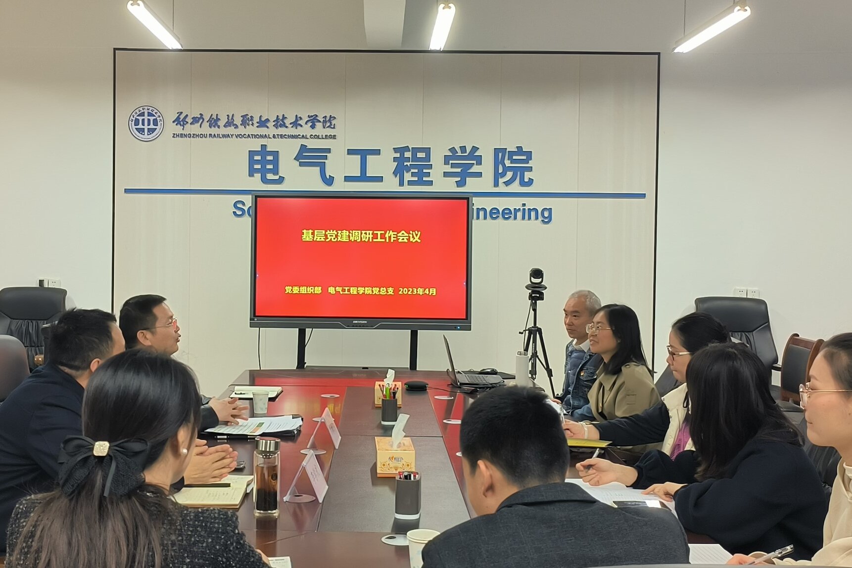 4月25日,学校党委组织部部长吕维勇、副部长周嵘一行到电气工程学院党总支开展基层党建工作调研,电气工程学院党总支召开工作会议,总支委员、教工第一党支部和第二党支部委员参会。