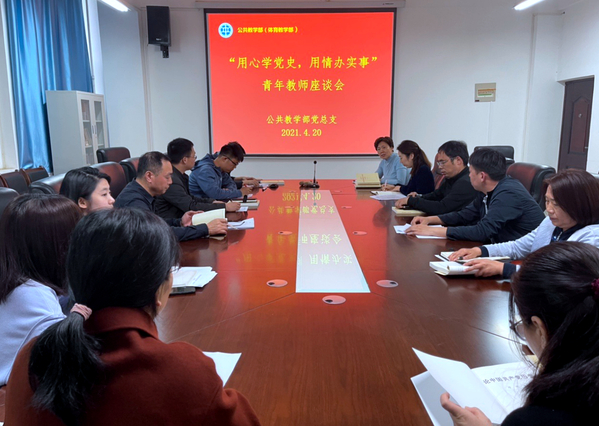 为了贯彻中共菠菜资源平台大全委员会关于印发《“学党史、强信念、育新人”党史学习教育实施方案》的通知要求,4月19日下午,公共教学部党总支在7412会议室召开部门青年教师座谈会,公共教学部党政班子全体成员、教研室主任参加会议。