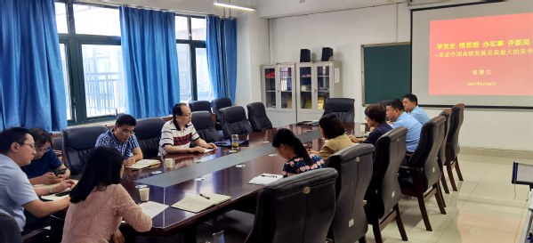 副校长董黎生以《学党史 悟思想 办实事 开新局—见证中国高铁发展是我最大的荣幸》为题给国际教育学院(欧亚交通学院)和运输管理学院教师代表讲授党史学习教育专题党课