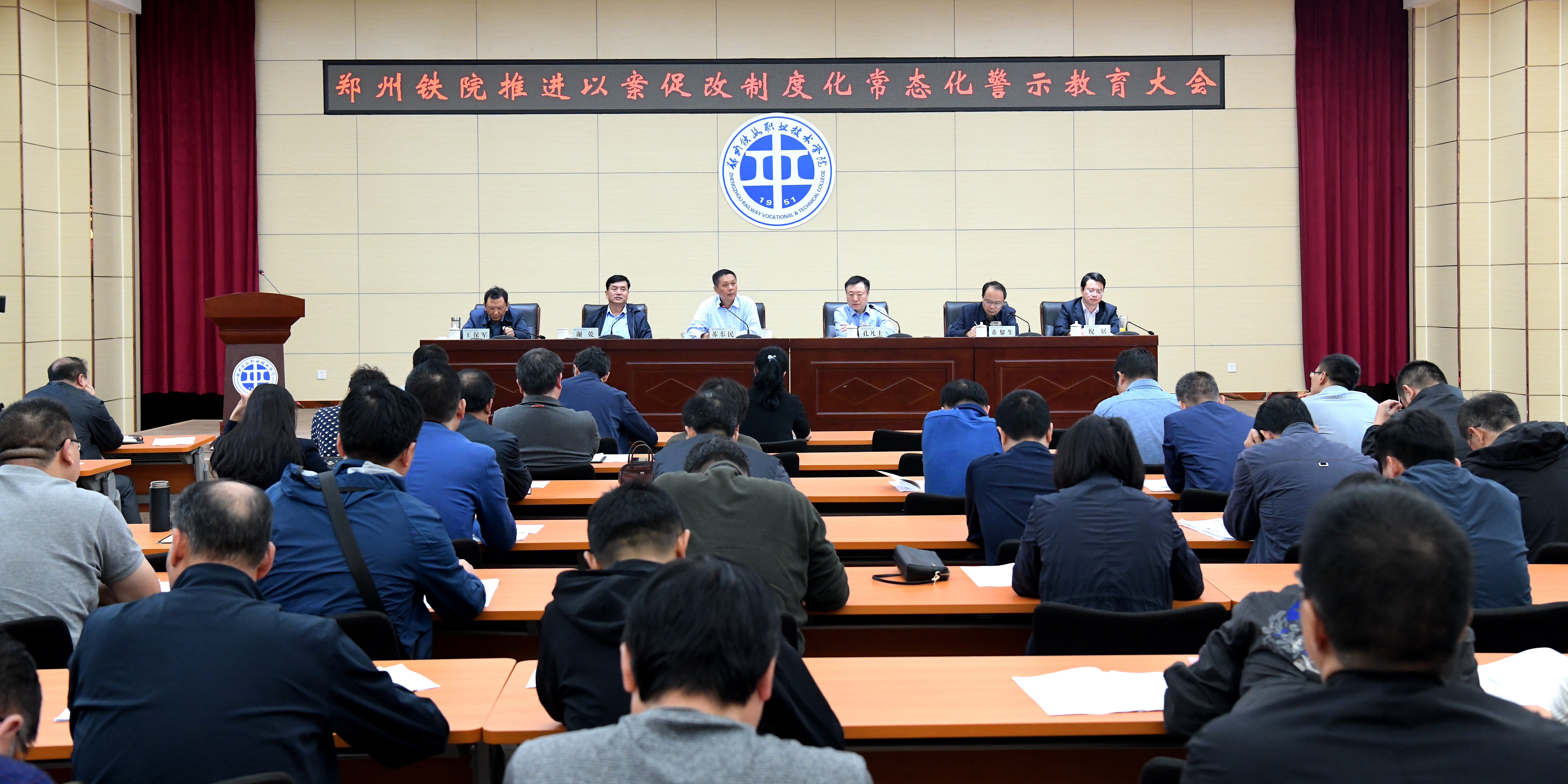 10月9日上午,我校在办公楼第一报告厅召开推进以案促改制度化常态化警示教育大会,校领导班子成员出席会议,全体中层干部参加了会议。大会由校长孔凡士主持。