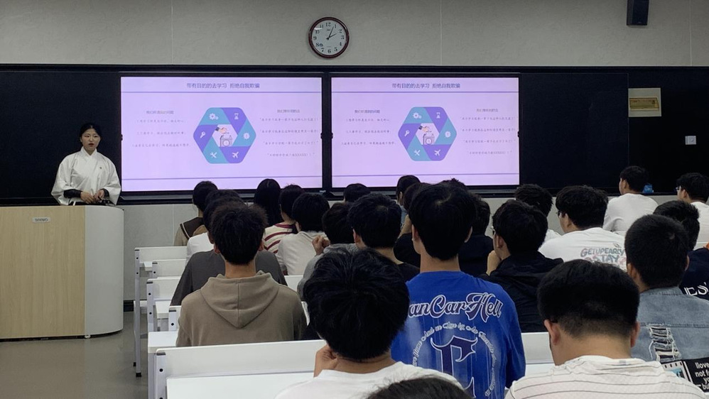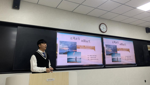 高铁朝同学和大家一起分享了他在学习和成长道路上的经验和思考。他认为,在步入大学校园时就要学会作为一个成年人去生活,“作为一个大学生,一定要制定好自己的目标,并向着目标前进”。关于学习,他强调,课堂的45分钟尤为重要,一定要高质量地完成听课,课后可以学习一些相关的专业知识,扩大知识面,或者阅读一些课外读物去丰富自己的知识素养,也可以加入一些社团或者部门来充实自己的大学生活。“不负青春,不负韶华,努力成为自己想成为的样子”。