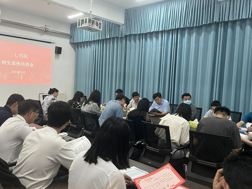 为进一步推动我院招生宣传工作顺利开展,助力我校生源质量稳步提升,6月6日,二七书院在党团活动室召开了2023年招生宣传工作会议。二七书院院长张家祥、党总支副书记宋宪华、副院长钟大成及全体专兼职育人导师参加了本次会议。
