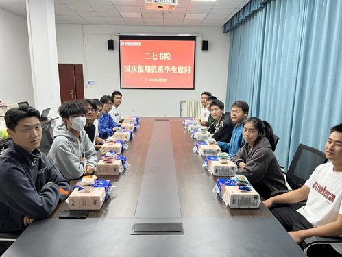 金秋送爽,喜迎双节。为感谢书院学生干部在双节假期期间的辛勤付出,提高值班学生干部的幸福感和归属感,营造温馨愉快的节日氛围,9月29日下午,书院领导一行带队到学生值班室开展了“送温暖”慰问活动。