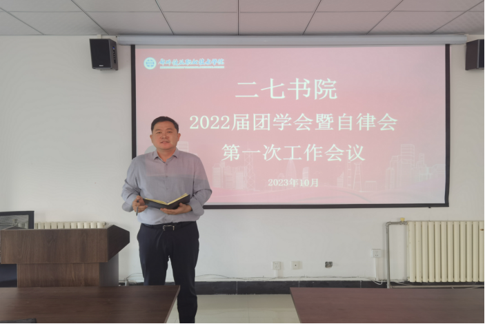 为进一步加强书院学生干部队伍建设,提高新一届学生干部工作的积极性,10月8日下午,二七书院在书院大讲堂召开2022届团学组织学生干部第一次工作会议。本次会议由书院党总支书记、院长张家祥主持,办公室主任陈中华、团总支副书记胡宪丽和2022届全体团学组织学生干部参加了本次会议。