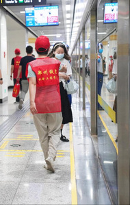 期间,大家严格遵照疫情防控要求,发扬为人民服务的精神,全身心地投入到了义务执勤中。志愿者热情的提醒乘客佩戴好口罩;上车前排队有序候车;车辆到站后提醒乘客先下后上,小心脚下安全;地铁门快关闭时,提醒乘客不要上车。有乘客问路时,热情帮助,为乘客指路答疑。有感觉不舒服的乘客,给她送去一杯温水。经过将近两个小时的执勤,圆满完成了地铁黄河路站的志愿服务工作。