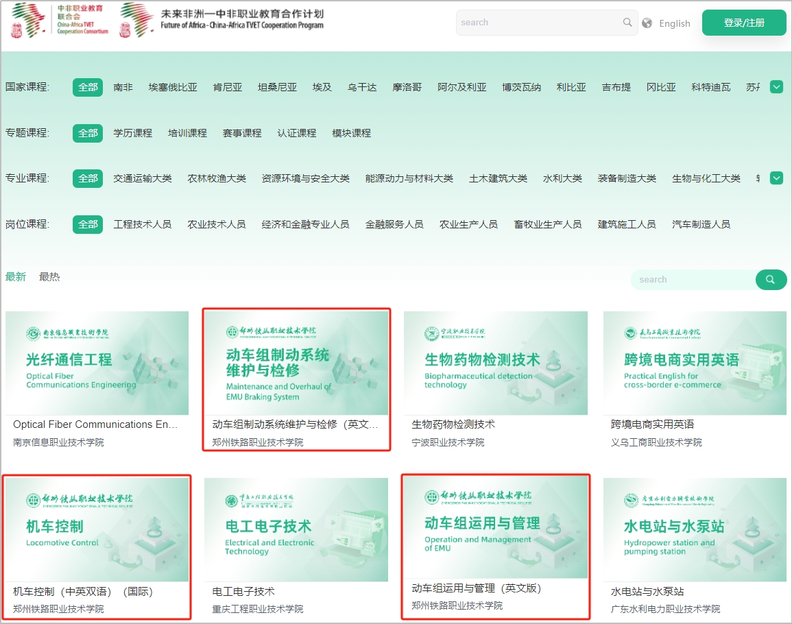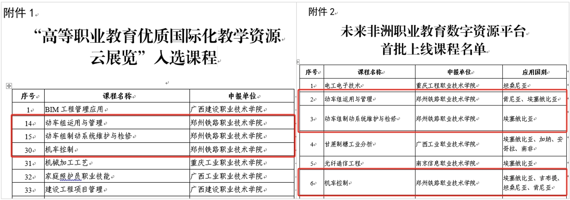 近日,中国教育国际交流协会与高等教育出版社联合公布了“高等职业教育优质国际化教学资源云展览”入选课程以及未来非洲职业教育数字资源平台首批上线课程。我校申报的动车组运用与管理、动车组制动系统维护与检修、机车控制三门课程成功入选,在国家智慧教育公共服务平台“国际频道”和未来非洲职业教育数字资源平台上进行展映。