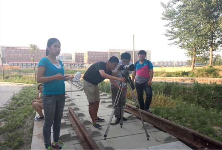 5月18日,运输管理系记者站的队员们迎着骄阳的天气进行微电影主题歌《青春节拍》MV的拍摄。他们活跃的身影在校园里随处可见,俨然成为校园里一道亮丽的风景线。这次活动由袁老师亲自指导拍摄,铁运7班的崔振华同学担任导演。《青春节拍》是由袁帅老师作词,演唱者全部是我系的在校学生。 下午五点,同学们带着专业设备以及道具在校园里开始进行拍摄工作。第一个场景是学校火车头,由6名微电影演唱的歌手上阵,主要呈现出歌曲中大家青春欢快的画面。之后同学们并不懈怠,继续转战第二的场景--小树林,导演分别对各个演唱者进行单独的拍摄。尽管天气炎热,但演唱者情绪高昂。袁老师对拍摄提出了几点要求,如何在道具、摄像、调位等方面进行分工,演员一遍又一遍的表演,不怕苦,不喊累,最终达到了理想的效果。整个拍摄的过程持续了两个小时。