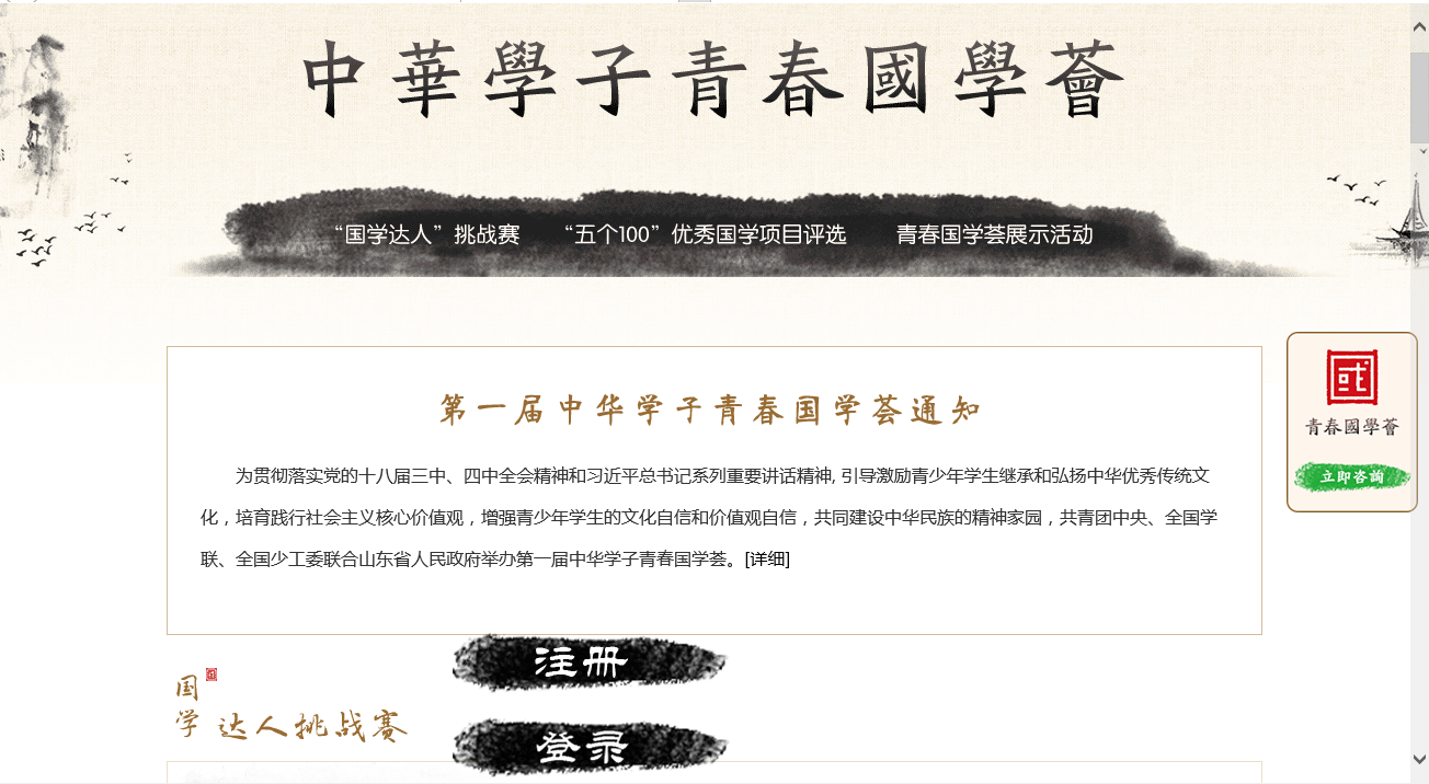 为贯彻落实党的十八届三中、四中全会精神和习近平总书记系列重要讲话精神, 引导激励青少年学生继承和弘扬中华优秀传统文化。我系参与了由共青团中央、全国学联、全国少工委联合山东省人民政府举办的“第一届中华学子青春国学荟”活动。 活动以网上答题的方式,采用“先注册,再答题”原则,即输入学校、姓名、身份证号及联系方式等信息,注册完毕开始答题,在线提交后当即显示回答错误的题目。答题项目分为分为七大类,有趣的闯关模式也让大家眼前一亮。在我系记者站的宣传下,主席团各成员以及各班级的同学们积极注册参与答题活动。 我系参与“第一届中华学子青春国学荟”活动,有利于培育学生们践行社会主义核心价值观,增强文化自信和价值观自信,共同建设中华民族的精神家园。