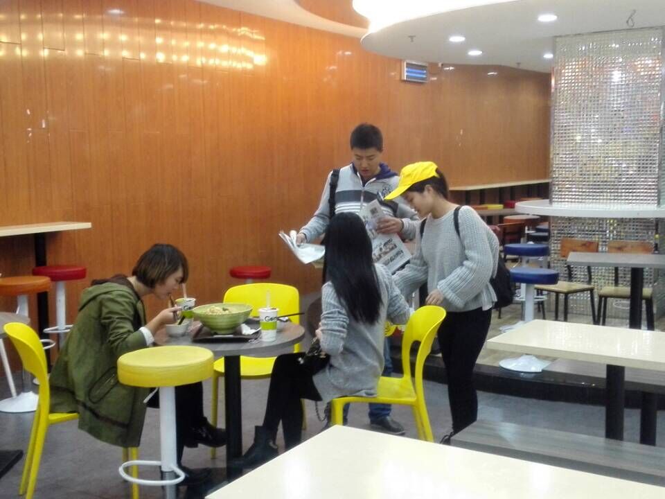2015年11月1日上午,我系社青部组织14级各班同学到二七广场二七塔与德化步行街进行大河报义卖。各班纷纷组织成员积极参与本次活动。