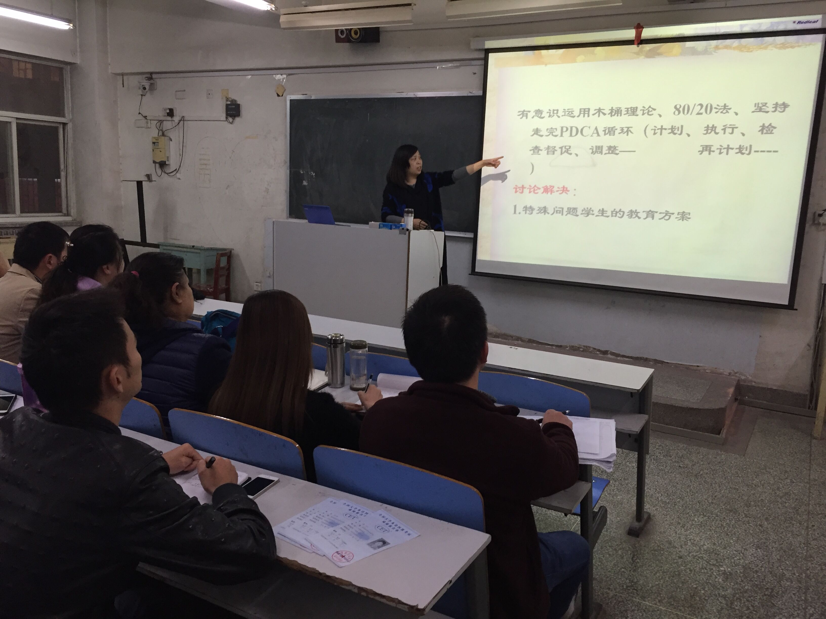 11月1日,运输管理系举行学生工作研讨会,会议由我系书记王冬主持,副书记刘斌和全体辅导员老师出席会议。 本次会议基于近期学生管理工作中出现的漏洞和问题提出建议和解决方案。王冬书记针对我系考核成绩在各系排名靠后这一事件发表讲话,鼓励大家只要努力,找到事情的关键点,每个人找对自己的位置并各司其职,就一定可以提高我系各方面工作。王冬书记重点介绍PDCA循环策略,提倡团队合作,建议大家在目标统一的前提下抓住重点、查漏补缺。继王冬书记关于对我系工作的讲话后,刘斌书记以他一贯幽默却深得人心的语言风格继续进行关于学生教育方法的讲话。就学生旷课、迟到早退、屡教不改等问题提出解决方案,刘书记指出要加强班长对班级同学的管理,学生会干部对考勤进行抽查。最后,会议提出本次院党校推优方式,要通过班级、团学组织干部、团总支三级考核,挑选一支优秀的共产党员队伍。 本次会议的顺利召开不仅深入全面的对我系工作进行了总结,对不足的地方查漏补缺,同时也为我系的学生管理工作打下基础。在大批优秀人才的管理下,我系各方面的工作会越来越好。