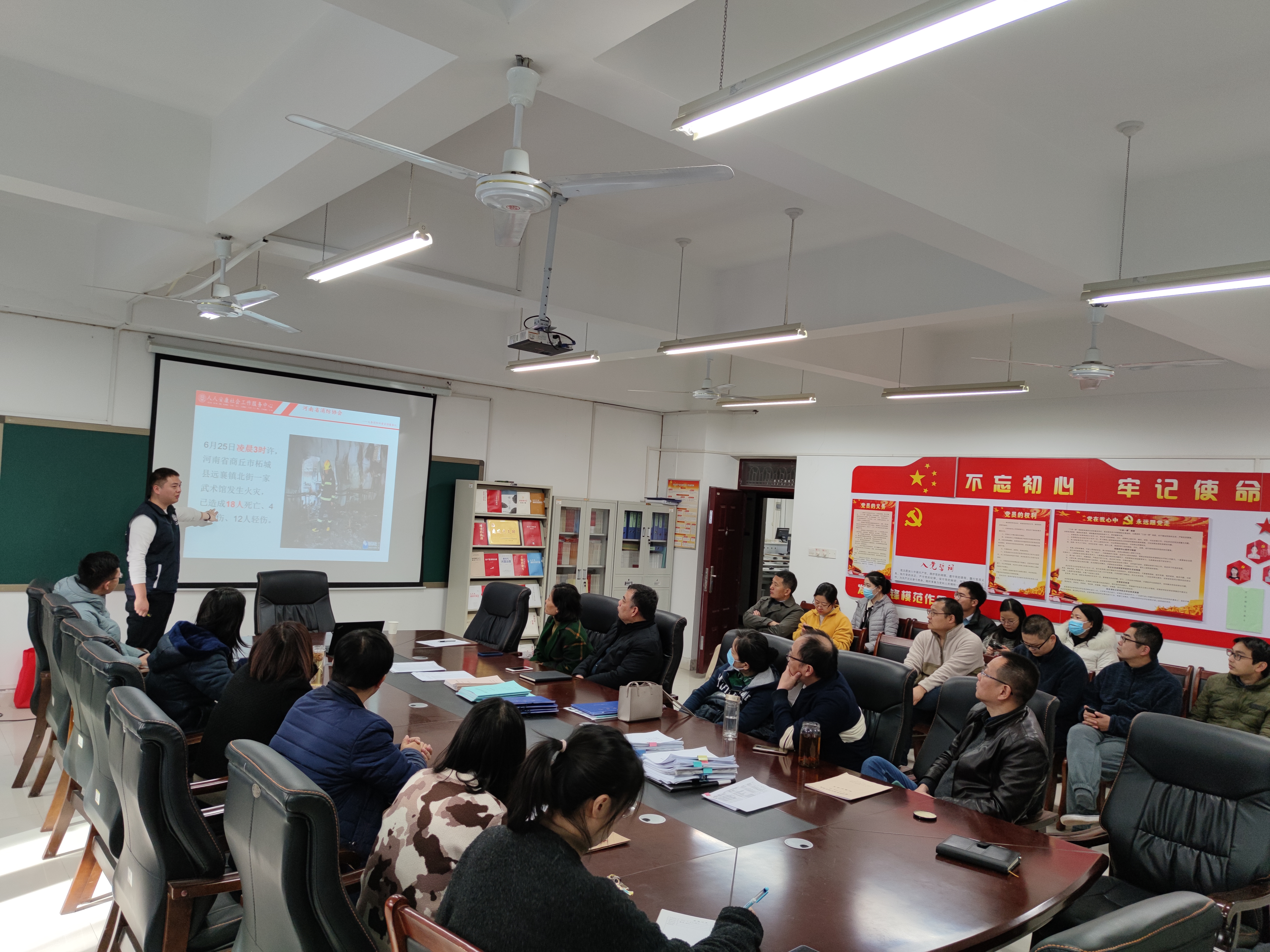 为迎接全国消防安全月到来,运输管理学院邀请到了河南省消费协会宣传员刘永兴教员,为全院教师进行了消防安全培训。 刘教员首先通过案例展示,从“防火”、“灭火”、“逃生”、“自救”四个方面详细介绍了火灾的形成过程、自救逃生的方法等。之后对生活中常见灭火设备的用途进行了分类介绍,并加以操作演示。最后现场回答了老师们提出的各种问题。 讲座深入浅出,案例发人深省,本次宣传讲座让老师们进一步认识到了消防安全在日常生活中的重要性,加强了自我防范意识,对学院做好消防安全工作具有重要的指导意义,更为打造平安校园奠定了坚实基础。