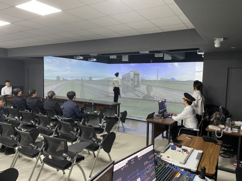 铁道交通运营管理专业学生为专家介绍了接发列车实训室的基本情况,展示了该实训室的三维立体仿真站场模拟系统的主要功能,并进行了铁路接发列车作业模拟演练,获得了专家的充分肯定。