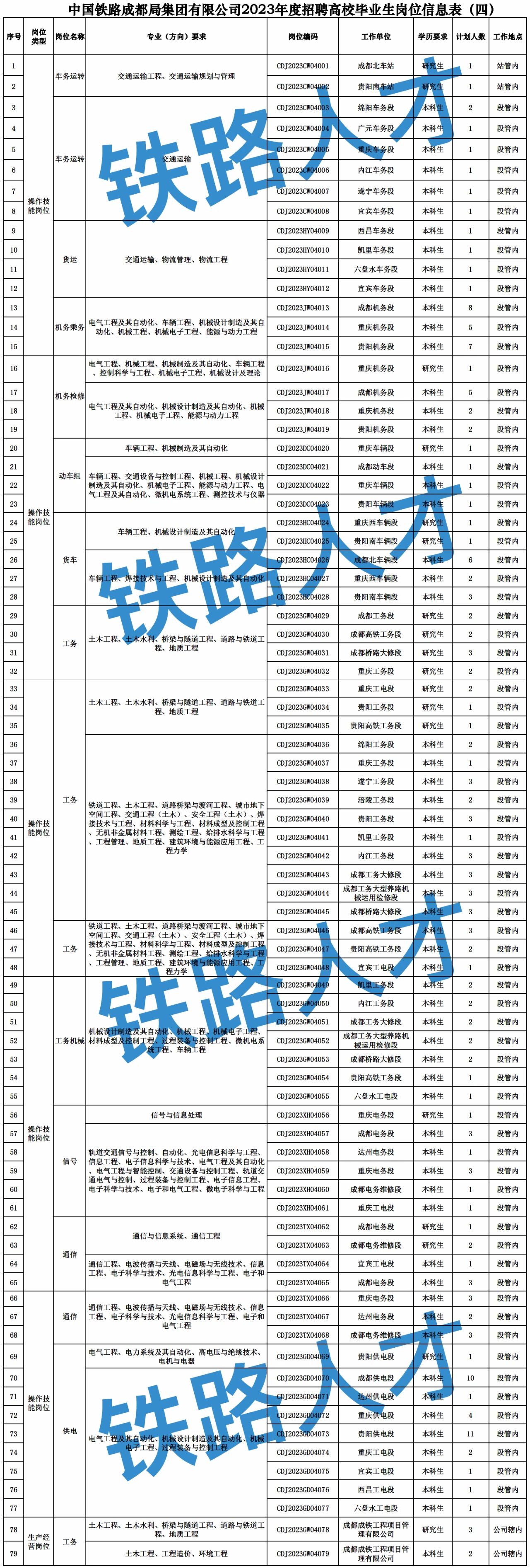 今日新招491人!中国铁路成都局集团有限公司2023年连发两大招聘公告(四)(五) |
