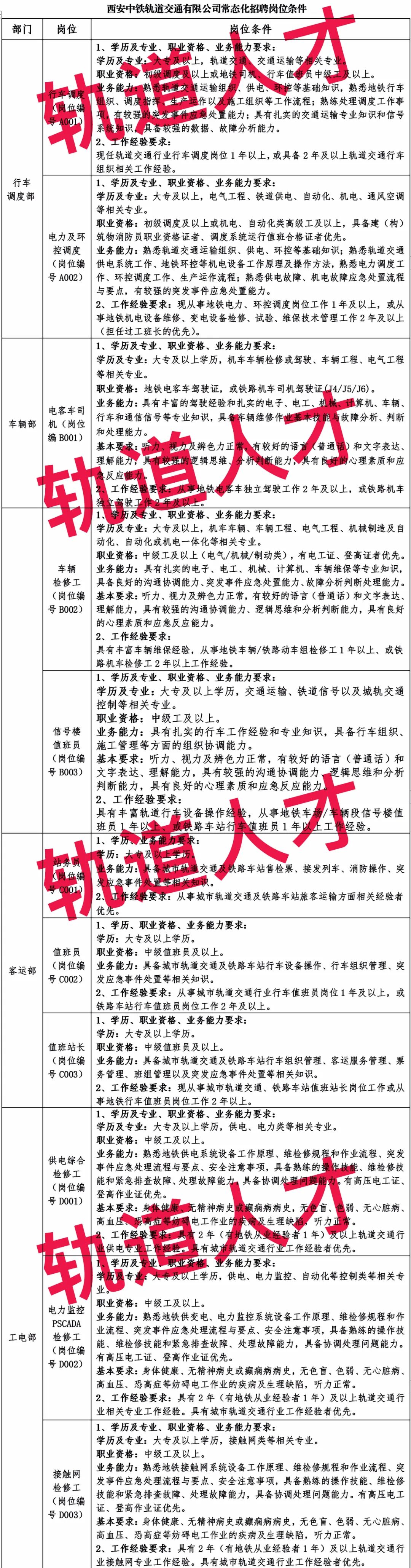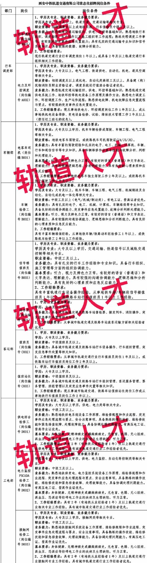 又一轨道公司招聘电客车司机、检修工、调度员、值班员、值班站长、站务员等岗位! |