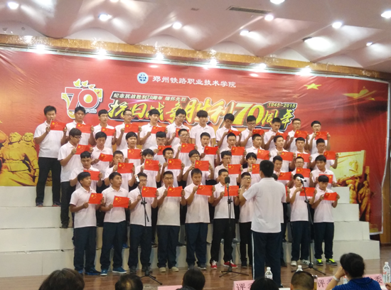 为纪念抗日战争胜利暨世界反法西斯战争胜利70周年,弘扬爱国主义精神和民族精神,8月31日机电工程系参加了学校举办的歌咏比赛。