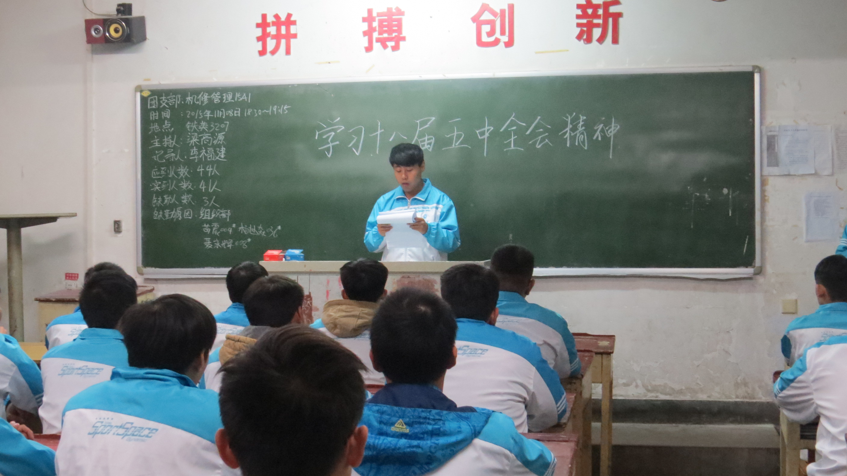 11月8日机电工程系开展了以“学习十八届五中全会精神”为主题的政治学习。参加成员是大一大二全体学生。