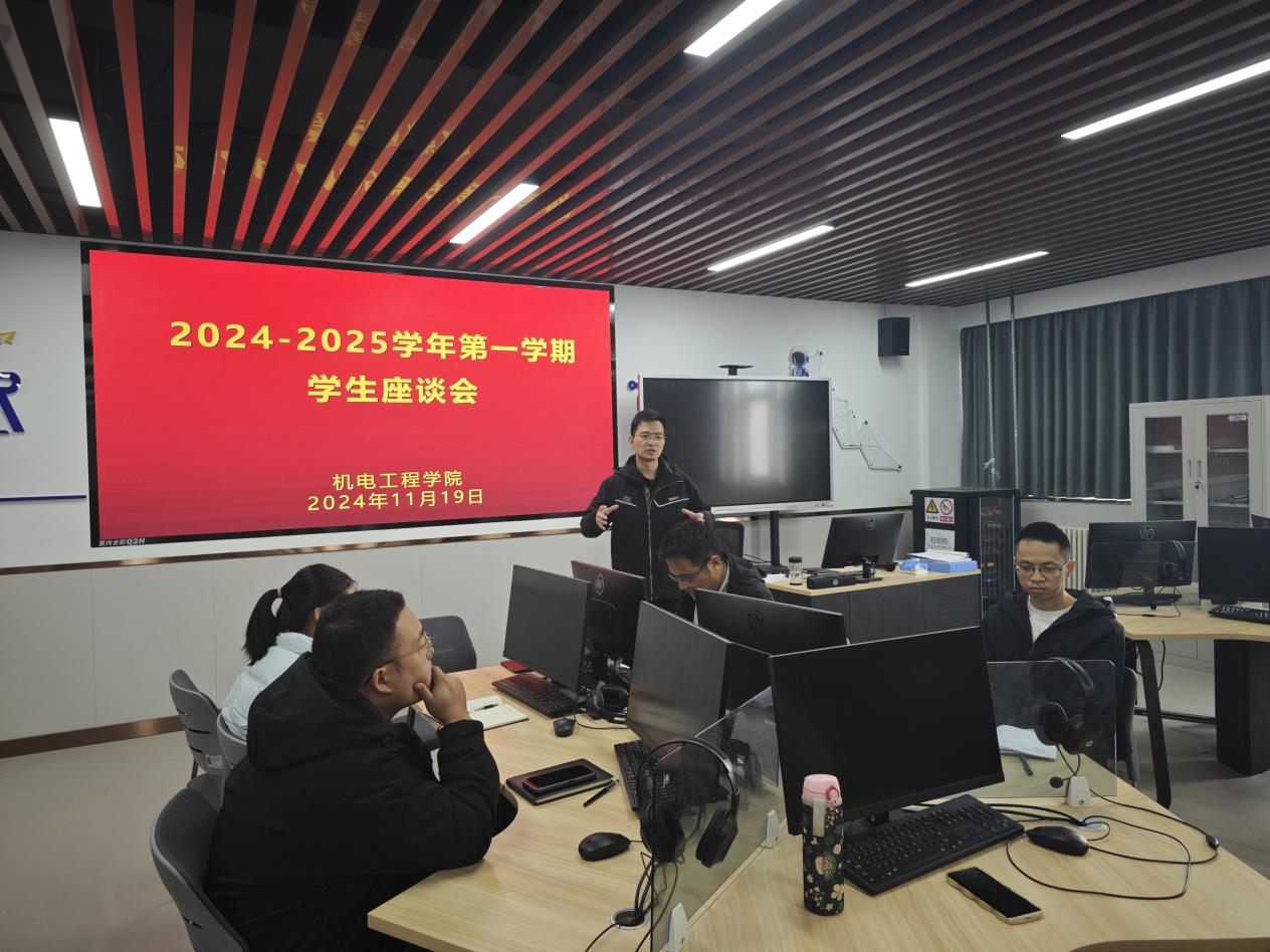 为深入了解学生的学习生活思想状况,听取学生对学院教育教学的意见与建议,11月20日下午,机电工程学院组织开展了2024—2025学年第一学期学生座谈会。学院副书记吕蒙,办公室主任屈辰鸣,各专业负责人,以及23级、24级学生代表参会。