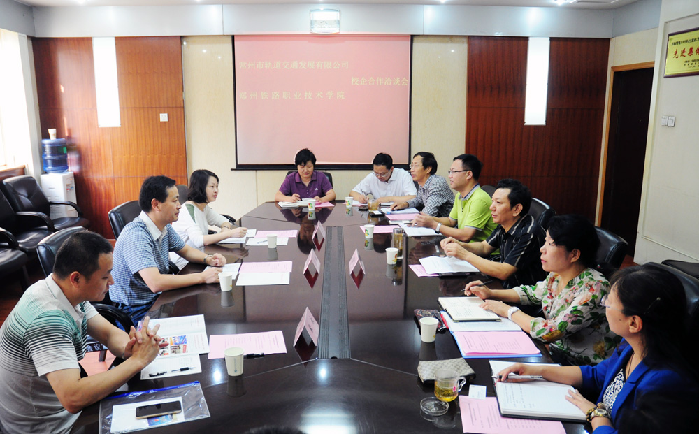 王保军介绍了我校发展历史、师资力量、办学条件、办学特色及订单培养轨道类人才的相关情况,王栋介绍了常州市轨道交通发展有限公司建设及运营筹备情况,相关专业部门负责人介绍了专业及课程体系建设情况,双方一致希望订单培养进展顺利。