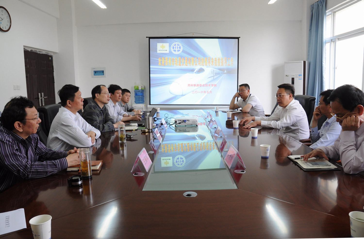张洲董事长介绍“十三五”期间郑州轨道交通发展规划,对与我校合作组建订单班、探索实施现代学徒制人才培养,共建专业,联合开发教材,共建共享实训基地等提出了具体构想。