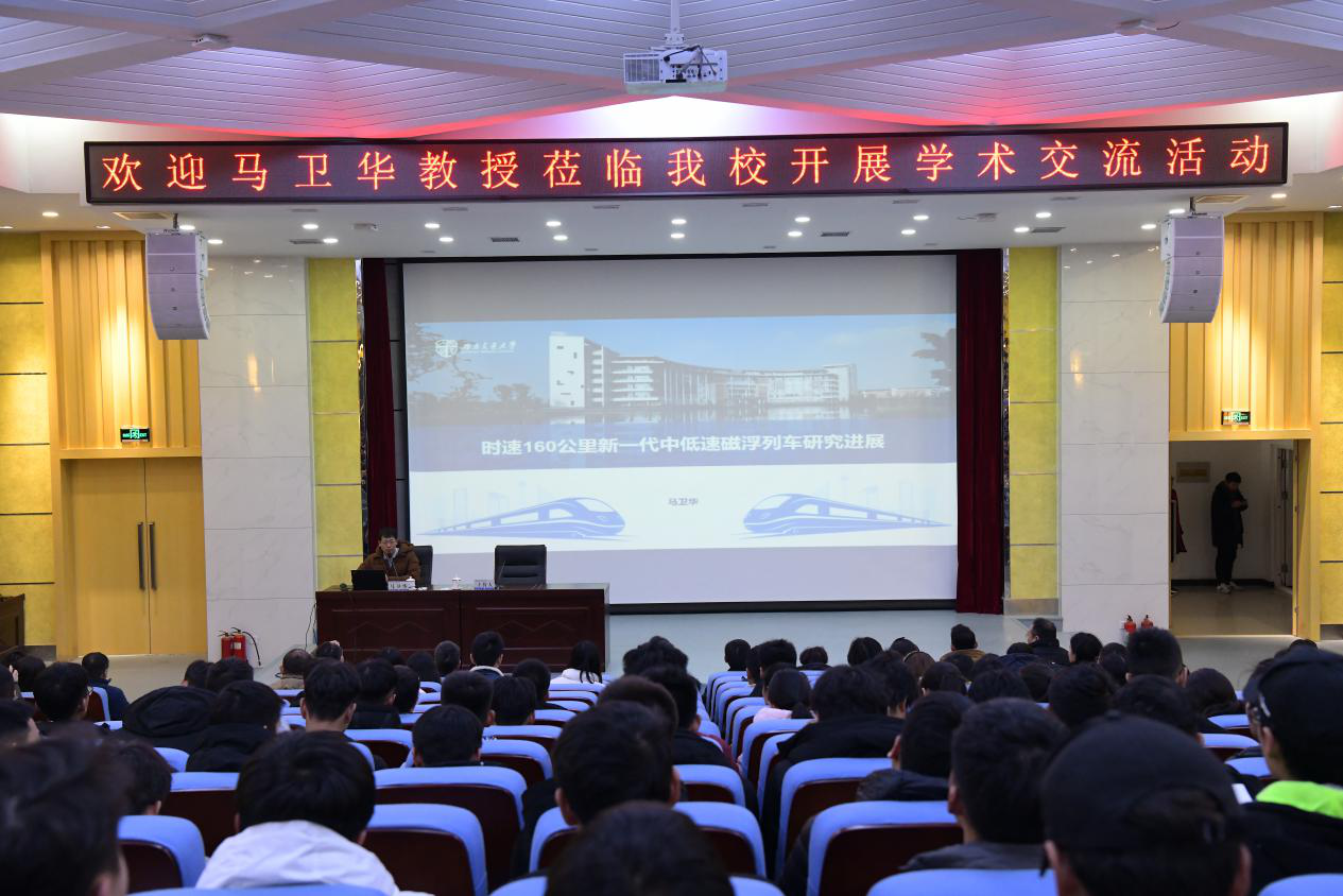 12月26日,我校邀请西南交通大学牵引动力国家重点实验室研究员,博士生导师马卫华,做了题为《中低速磁浮列车》专题报告。机车车辆学院、电气工程学院、铁道工程学院、机电工程学院、电子工程学院、运输管理学院及部分行管人员约300名师生参加了学术报告会。