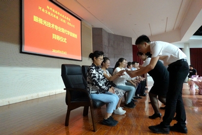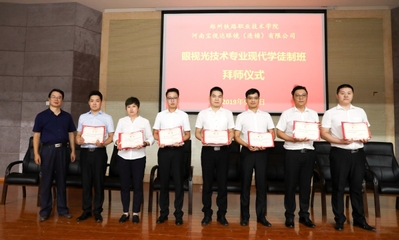 9月9日,我校眼视光技术专业现代学徒制试点班举行拜师仪式,宝视达集团职教中心总监李颖艳、副校长倪居出席拜师仪式,教务处、医学技术与工程学院负责人,学校和企业导师以及2019级眼视光技术专业学生参加仪式。