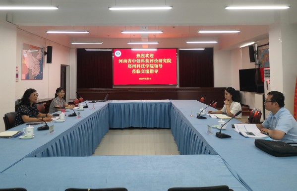 8月5日上午, 河南省中创科技评价研究院院长赵亚君、郑州科技学院科研处副处长齐仁龙到我校洽谈交流,我校科技处处长陆艳琦及部门相关人员参加座谈会。