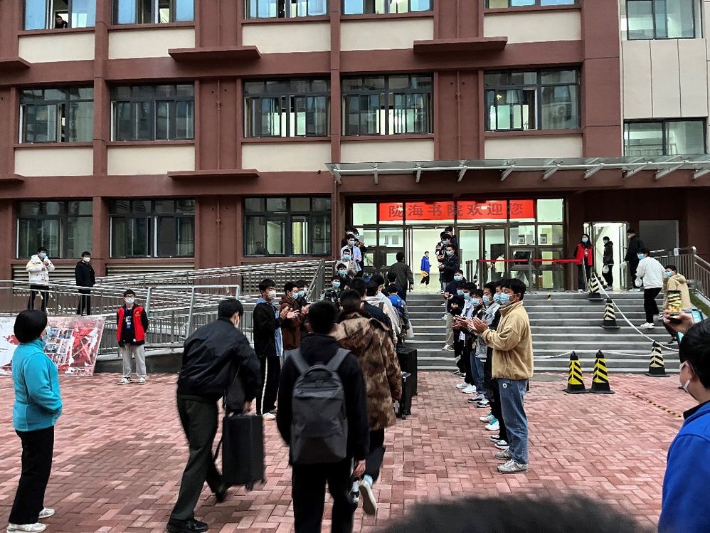 欢迎仪式上,书院领导表扬了他们在这次抗击疫情工作中做出的贡献,为我们陇海书院争得了荣誉。